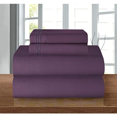 Elegant Comfort Luxury 1500 Premium Hotel Quality Microfiber 4 Piece Sheet Set Wrinkle Resistant, All Around Elastic Fitted Sheet, Deep Pocket up to 16", Twin/Twin XL, Purple