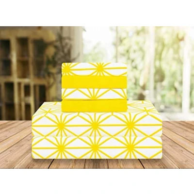 Elegant Comfort Luxury Soft Bed Sheets Cube Pattern 1500 Thread Count Percale Egyptian Quality Softness Wrinkle and Fade Resistant (6 Piece) Bedding Set, King, Yellow