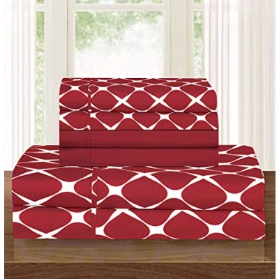 Elegant Comfort Luxury Softest and Coziest 6 Piece Bed Sheet Set, Wrinkle Resistant Milano Trellis Pattern 1500 Thread Count Egyptian Quality Bedding Queen, Burgundy