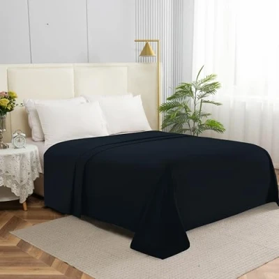 Elegant Comfort Premium Hotel Quality 1 Piece Flat Sheet, Luxury & Softest 1500 Thread Count Egyptian Bedding Wrinkle, Stain and Fade Resistant, King, Black