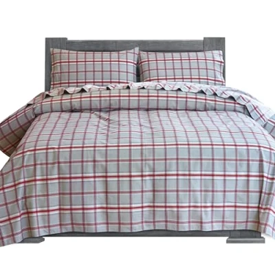 CONTENTS & MEASUREMENTS- Flannelg Queen sheet set includes: 1 Queen Flat Sheet 90" x 102", 1 Queen Fitted Sheet 60" x 80"+ 14", 2 Standard Pillowcases 20" x 30". Perfect for Standard sized pillows. Our premium flannel bed sheets enhance the comfort level of any bed. For the perfect fit fitted sheet will fit mattresses up to 14 Inches. WARM AND BREATHABLE: Give a warm welcome to our softest, coziest, and most gentle sheet set. Our warm 100% Turkish cotton flannel sheets are perfect for chilly winter nights or summer heat since these are breathable too, making them perfect for all-season. Available in various colors, patterns and sizes, making them suitable to match any interior design and decor. PREMIUM QUALITY: Made in Pakistan from incredibly double brushed soft and breathable 100% Turkish Cotton fibers. Cotton flannel is known for its durability and long-lasting quality, ensuring your sheets will withstand regular use and washing. Featuring a fuzzy texture that adds a glorious touch of softness to your bedding. OEKO-TEX 100 STANDARD CERTIFIED- All our products are STANDARD 100 by OEKO-TEX. According to the guidelines, these products are tested for harmful substances and produced in an environmentally friendly and socially responsible manner. Each fabric batch is also tested for various durability features such as no-pilling, low shrinkage, color fastness, etc. Then they are stitched, individually inspected to be defect free and finally, packed for sales. EASY CARE- Neat and freshly washed sheets make sleep serene. We recommend washing your Elegant Comfort sheets before the first use. Machine wash cold with like colors on a gentle cycle. Tumble dry low to avoid damaging your sheets.