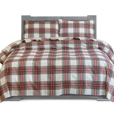 Elegant Comfort Soft 4 Piece 100% Turkish Cotton Flannel Sheet Set Premium Quality, Deep Pocket Fitted Sheet, Ultra Soft, Cozy Warm Sheets Cali King, Plaid Ivory