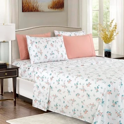 Elegant Comfort Softest and Coziest 6 Piece Sheet Set 1500 Premium Hotel Quality Microfiber Deep Pocket, Wrinkle Resistant Floral Bed Set, Queen, Celia Pink