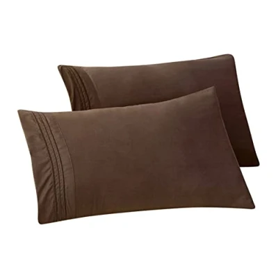Elegant Comfort Solid Pillowcases 1500 Premium Hotel Quality Microfiber Smooth Weave, Wrinkle and Stain Resistant, Easy Slip On, 2 Piece Set, King Pillowcase, Brown