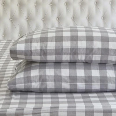 Elegant Comfort Ultra Soft 4 Piece 100% Turkish Cotton Flannel Sheet Set Buffalo Check Plaid Sheets, Warm and Cozy Anti Pill Premium Quality, Deep Pocket Fitted Queen, Gray