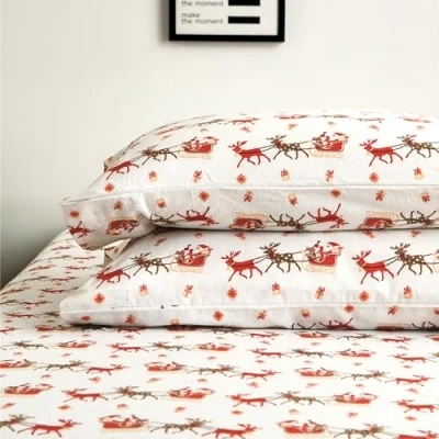 CONTENTS & MEASUREMENTS- Flannel Full sheet set includes: 1 Full Flat Sheet 81" x 96", 1 Full Fitted Sheet 54" x 75"+ 14", 2 Standard Pillowcases 20" x 30". Perfect for Standard sized pillows. Our premium flannel bed sheets enhance the comfort level of any bed. For the perfect fit fitted sheet will fit mattresses up to 14 Inches. WARM AND BREATHABLE: Give a warm welcome to our softest, coziest, and most gentle sheet set. Our warm 100% Turkish cotton flannel sheets are perfect for chilly winter nights or summer heat since these are breathable too, making them perfect for all-season. Available in various christmas patterns and sizes, perfect for the holiday season. PREMIUM QUALITY: Made in Pakistan from incredibly double brushed soft and breathable 100% Turkish Cotton fibers. Cotton flannel is known for its durability and long-lasting quality, ensuring your sheets will withstand regular use and washing. Featuring a fuzzy texture that adds a glorious touch of softness to your bedding. OEKO-TEX 100 STANDARD CERTIFIED- All our products are STANDARD 100 by OEKO-TEX. According to the guidelines, these products are tested for harmful substances and produced in an environmentally friendly and socially responsible manner. Each fabric batch is also tested for various durability features such as no-pilling, low shrinkage, color fastness, etc. Then they are stitched, individually inspected to be defect free and finally, packed for sales. EASY CARE- Neat and freshly washed sheets make sleep serene. We recommend washing your Elegant Comfort sheets before the first use. Machine wash cold with like colors on a gentle cycle. Tumble dry low to avoid damaging your sheets.