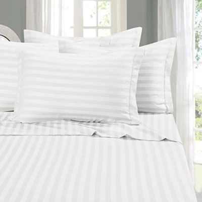 Elegant Comfort Wrinkle & Fade Resistant 1500 Thread Count Damask Stripes Egyptian Quality Luxurious Silky Soft 4 Piece Sheet Set, Up to 16" Deep Pocket, King, White