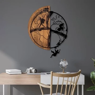 Crafted from 100% real wood and durable metal, this decorative wall accessory combines natural beauty with modern design, ensuring a unique addition to your home decor. Measuring 50 x 66 cm, this eye-catching piece is the perfect size to make a statement on any wall, enhancing your living space with its elegant walnut and black color scheme. The 3 cm thickness of the wooden frame adds depth and dimension, while the 1.5 mm metal accents provide a contemporary touch, making it suitable for various interior styles. Easy to hang, this wall accessory is designed for effortless installation, allowing you to transform your space in minutes without the need for professional help. Each piece is one-of-a-kind, showcasing natural variations in color tone and wood texture, ensuring that your decorative accessory is truly unique and adds character to your home.