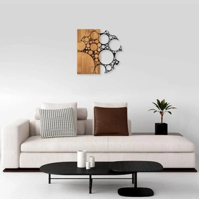 Enhance your home decor with this stunning decorative wooden wall accessory, featuring a unique blend of walnut and black colors for a modern touch. Crafted from 50% high-quality wood (3 cm thickness) and durable metal (1.5 mm thickness), ensuring both elegance and longevity in your living space. Generously sized at 58 x 58 cm, this wall accessory makes a bold statement while complementing various interior styles, from contemporary to rustic. Weighing 3.42 kg, this sturdy piece is easy to mount and designed to last, providing a reliable addition to your wall decor collection. Embrace the natural beauty of real wood; each piece may vary in color tone and texture, making your wall accessory truly one-of-a-kind.
