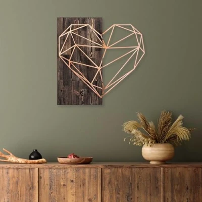 Elegant Decorative Wooden Wall Accessory, 58 x cm, Walnut & Copper, 50% Wood (3 cm) Metal (1.5 mm), Mountable, Unique Design