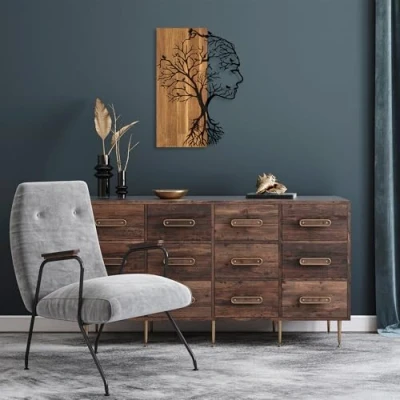 Stylish Design: This decorative wooden wall accessory features a modern blend of walnut and black colors, making it a perfect addition to any home decor style. Durable Construction: Crafted from 50% high-quality wood and 50% sturdy metal, this wall accessory is designed to last while adding a touch of elegance to your space. Unique Variations: Each piece is made from real wood, ensuring that every item has its own unique color tone and texture, adding a personalized touch to your decor. Perfect Size: Measuring 43 x 58 cm, this wall accessory is the ideal size to make a statement without overwhelming your wall space. Easy to Hang: Designed for convenience, this decorative piece comes with easy-to-follow hanging instructions, allowing you to effortlessly enhance your wall decor.