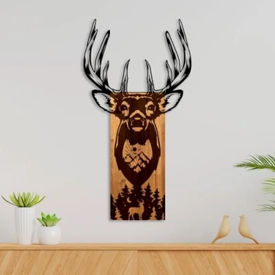 Stylish Design: This decorative wooden wall accessory features a modern blend of walnut and black colors, adding a touch of elegance to any room. Durable Construction: Made with 50% real wood (3 cm thick) and 50% metal (1.5 cm thick), this wall accessory is designed to withstand the test of time while enhancing your decor. Perfect Size: With dimensions of 48 cm in width, 58 cm in height, and a slim depth of 3 cm, it fits perfectly on any wall without overwhelming your space. Unique Variations: Each piece is crafted from real wood, ensuring that every accessory has its own unique color tone and texture, making it a one-of-a-kind addition to your home. Easy to Hang: Lightweight yet sturdy, this wall accessory is easy to install, allowing you to effortlessly elevate your interior design in minutes.