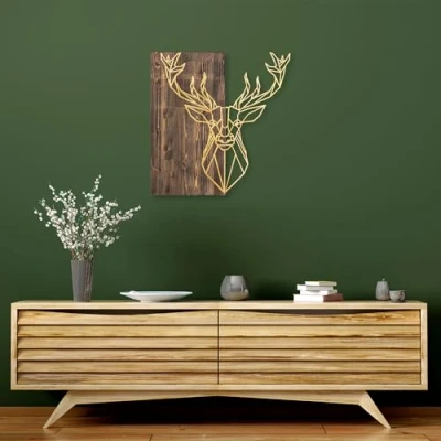 Enhance your home decor with this stunning decorative wooden wall accessory, featuring a unique blend of walnut and gold colors for a sophisticated touch. Crafted from 50% high-quality wood (3 cm thick) and 50% durable metal (1.5 mm thick), this wall accessory combines elegance with strength for lasting beauty. Measuring 56 x 58 cm, this eye-catching piece is the perfect size to make a statement in any room, whether it's your living room, bedroom, or hallway. Weighing just 4.071 kg, this wall accessory is easy to install and can be securely fixed to the wall, ensuring it stays in place while adding charm to your space. Each piece is unique due to the natural variations in wood, offering a one-of-a-kind look that may differ in colour tone and texture, making it a truly special addition to your home.