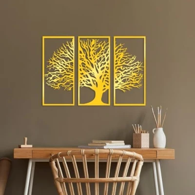 Elegant Gold Decorative Metal Wall Accessory (3 Pieces), 32 x 69 cm Durable 1.5 mm Body Perfect for Modern Home Decor & Stylish Interiors