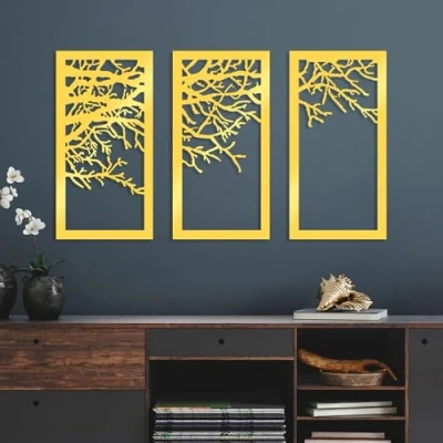 Elegant Gold Decorative Metal Wall Accessory (3 Pieces), 36 x 70 cm Durable 1.5 mm Body Perfect for Modern Home Decor & Stylish Interiors