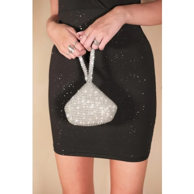Elegant Mini Soft Body Bridesmaid Women Girl Bride Bling Diamante Crystal Prom Cocktail Party Wedding Engagement Evening Bag Purse Clutch Pouch Silver