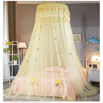 Elegant Princess Lace Dome Mosquito Net Bed Netting Canopy Curtain with Decorative Patch for Children Fly Insect Protection,Yellow
