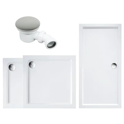 ELEGANT Rectangular 1200 x 800 40 mm Stone Tray for Shower Enclosure Cubicle + Waste Trap