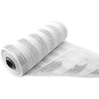 Eleganza 25cm Silver & White Stripe Deco Mesh, 29CM