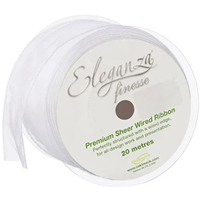 ELEGANZA 70 mm x 20 m Wired Edges Sheer Ribbon, Woven, White, 12 7 cm