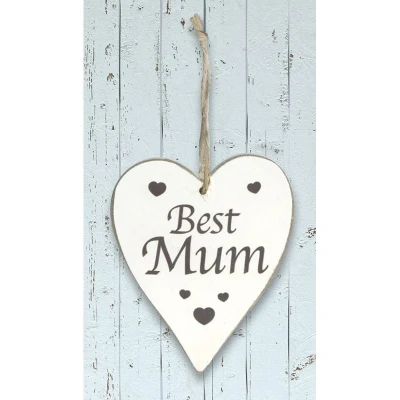 Wooden Heart - Whitewash 9cm x 11cm - Best Mum - 1pc 641594 OA641594 OA641594 MPN 641594