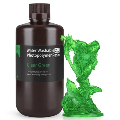 ELEGOO Upgraded Water Washable 3D Printer Resin 2.0, 405nm UV Curing with Lower Shrinkage and Higher Precision for LCD Printing Clear Green 1KG