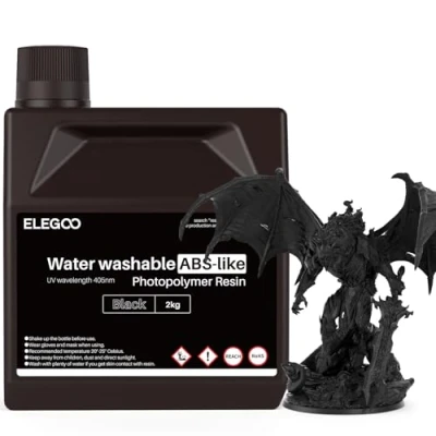 ELEGOO Water Washable ABS Like Resin 1KG, Rapid 3D Printer 405nm LCD UV Curing Standard Photopolymer for Printing Black 2kg