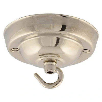 ElekTek 108mm Diameter Ceiling Rose with Hook Metallic Finishes Powder Coated Colours for Pendant Light Fittings and Chandeliers Nickel