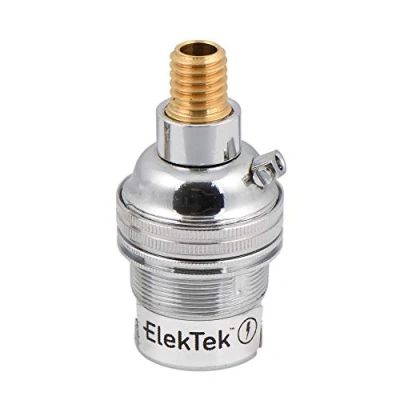 ElekTek Unswitched Lamp Holder Chrome B22 BC Bayonet Cap & Shade Ring with CNC Solid Brass 7/16th Screw in Wood Mount Made UK
