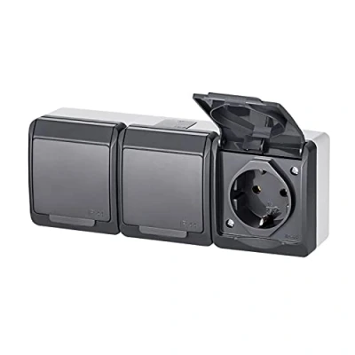 ELEKTRO PLAST Hermes Surface Mounted 3 Way Triple Socket IP44 Waterproof Outdoor Anthracite Grey