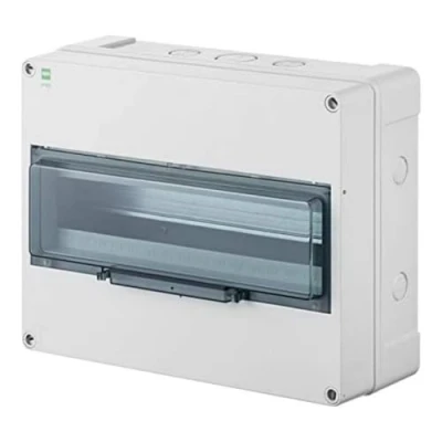 Very stable fuse box made of ABS plastic - ideal for installation in damp rooms and outdoors - as protection class IP65. On the integrated top-hat rail there is space for 16 circuit breakers (16TE), and PE+N terminals are integrated. Thanks to the transparent darkened front door front, the view of the machines is possible. There are cable entries on the side, top and bottom. Inside, wiring is well possible, as the housing is quite large. The distributor is delivered in the colour RAL7035 light grey., Weight: 3.67290128492 Pounds, Manufacturer: Elektro Plast