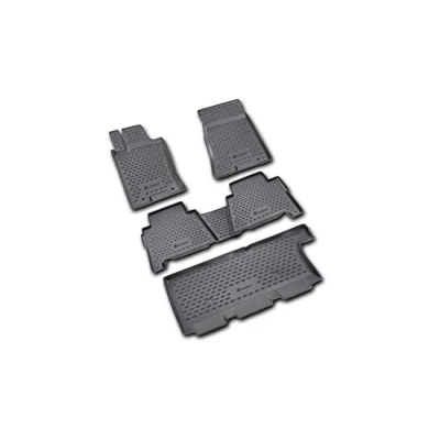 Suitable for Kia Mohave 10/2009 - 5 pieces 3D premium design / perfect fit for the mentioned model - not universal shape Our practical boot mat has an approx. 3-4 cm high edge and the material is highly elastic and therefore it is easy to roll up The non-slip surface of the boot liner minimises the slipping of the load The durable boot mat protects against dirt, snow and liquids and is resistant to liquids such as oils, acids, petrol