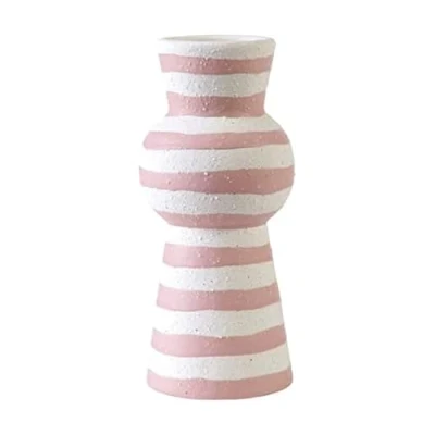 ENHANCE YOUR HOME DECOR: The ceramic vase features a unique shape that suits any decor. PLAYFUL PATTERN: The pink and white striped pattern creates a feeling of whimsy. DISTINCTIVE DISPLAY PIECE: Great for showcasing flowers, greenery, feathers, and more USE IN ANY ROOM: Great for your living room, bedroom, bathroom, and more MEASURES: 3.5 x 3.5 x 8 inches