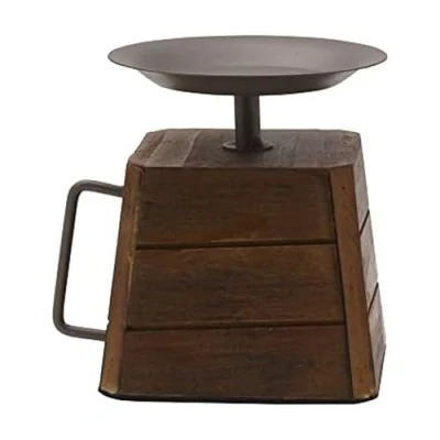 ILLUMINATE AND DECORATE: use with a 3 x 3 inch pillar candle to add a soft, elegant glow to your home; candle not included RUSTIC: wooden base and metal handle bring a unique look to your decor VERSATILE: place on desks, dressers, or any other tabletop piece of furniture MAKES A GREAT GIFT: perfect for housewarming parties, weddings, and more MEASURES: 5.25 inch L x 4.25 inch W x 5 inch H