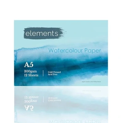 Elements A5 Watercolour Sketchbook Paper Journal Pad, 300gsm, 12 Sheets, Cold Pressed Acid Free for Techniques and Mixed Media