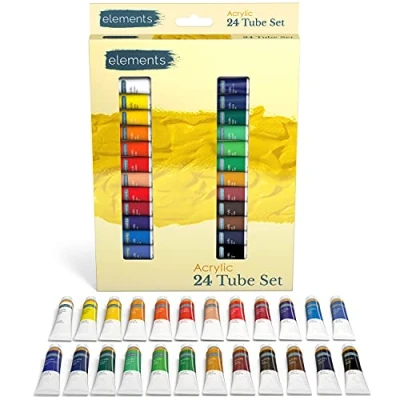 Elements Acrylic Paint Set 12ml Tubes, 24 Piece of Professional Drawing Painting Pigments, Vibrant Paints, Multi Colour