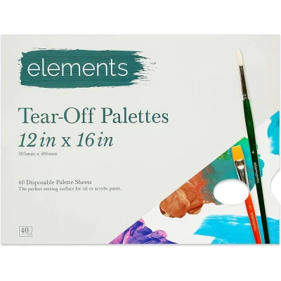 Elements Tear Off Palette 40 Disposable Painting Sheets, Artist Pad Mixing Surface for Oil or Acrylic Paint Pigment Colours 12"x16"