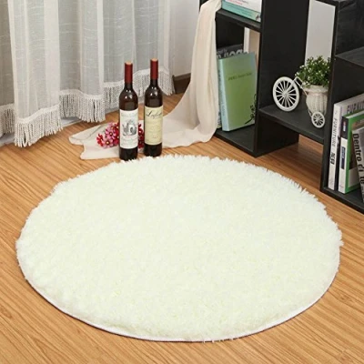 Eleoption Round Soft Shaggy Microfiber Area Rug, Anti skid Floor Mat Room Carpets for Kids Children Playroom Living Bedroom Chair Cushion, 120cm, Beige