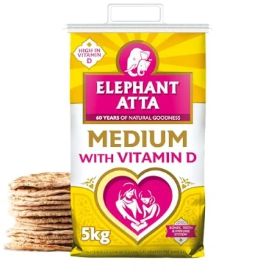 Elephant Atta Medium Flour with Vitamin D Chapatti Forfeited Health Vit Naan Roti Plain (5kg)