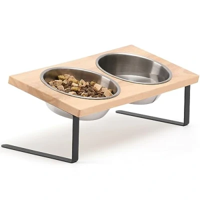 15° Elevated Cat Bowl - Cat food bowl is designed with a 15 ° engineering tilt, which can reduce the neck and stomach pressure of cats or dogs when eating, help pets swallow, and more in line with the dietary habits of cats and dogs. Safe & Easy to Clean - Raised cat food bowls is made of food grade 304 stainless steel bowl, safe, odorless, resistant to falling and corrosion. Detachable, cat food and water bowl set can be used with a dishwasher for easy cleaning. Natural Rubber Board - Cat food stand is made of 1.5 cm thick rubber wood, more sturdy, environmentally friendly, and coated with a layer of varnish on the surface, waterproof and corrosion-resistant, sturdy and durable. Stainless steel dog bowls with a minimalist design style is easy to match with your furniture. Picked for Cats & Puppy - Cat bowls elevated tilted dimensions is 13.7 cm wide and 4.3 cm deep,can meet the daily drinking capacity of an adult cat. It can accommodate shallow and wide shapes to prevent whisker fatigue, while rounded edges make it easy for your cat to get every bit of food. Satisfaction Guarantee - If you have any dissatisfaction with our products in 30 days after purchase, please feel free to contact us though Amazon. We will solve the problem for you within 48 hours. Your satisfaction is our ultimate goal.