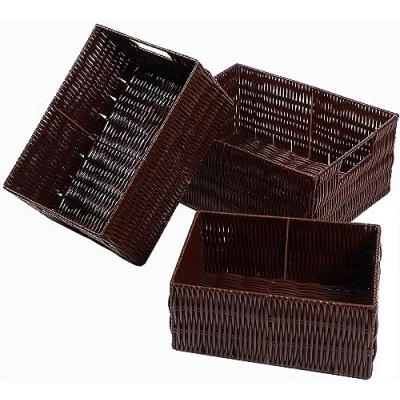 Elevon Handmade Wicker Storage Baskets Organizer Bins, Set of 3, Coffee