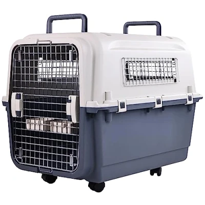 Elevon Plastic Kennels Pet Carrier Rolling Airline Approved Wire Door Travel Dog Crate, Large (30.7" L x 21.3" W 22.8" H)