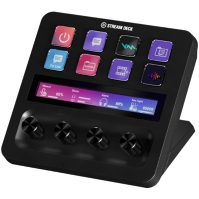 With the Stream Deck+ on your desk, any action is just a button-press away. You can use it as an audio mixer, studio controller, or production console - whatever you're working on that day. It's got 8 LCD keys that you can completely customise. Launch apps, control presentations, mute your mic, copy & paste, … You get it. And with the Elgato's Wave Link mixing software, you can dive into plugins, icon packs, and lots of royalty-free sounds to make your setup feel even more you. Good to know - The included USB-C cable makes it easy to plug into most PCs and laptops - Its four control dials help you tweak volume, lighting, or zoom even while you're streaming - The touch strip lets you know settings at a glance