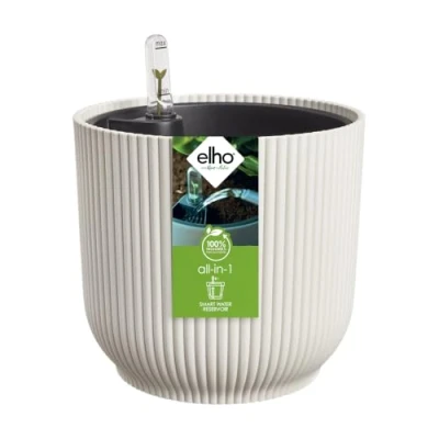 elho All in 1 Vibes Round 18 + Swi 17 100% Recycled Plastic Plant Pots Indoor Ø cm White/Linen White