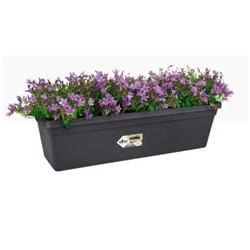 • Made with recycled plastic, made with own wind energy, 100% recyclable• This planter is nice for your window-sill, fence or balcony• Ideal for combining with plants with a pot size of approxiamtely 16cm diameter• Made of recycled plastic. Can take a good deal of wear and tear, which is handy with kids or pets.• Each balcony planter has a matching saucer available.• The balcony planter is frost-resistant and can be used in every gardening seasonThis complete balcony planter has a convenient drainage at the bottom. This ensures a healthy environment for the plants, thanks to the drainage holes and matching saucer. With this much choice, gardening on the balcony has never been so much fun before!Technical Specification:Collection Name: Green basicsFamily Name: Green Basics TroughSize Name: Green Basics Trough 60Product Type: PlanterProduct Shape: RectangularColour Group: BlackColour Name: Living BlackCommercial Material: PlasticRaw Material: Regenerated polypropyleneBottom Holes: FalseContainer Proof: FalseDrainage System: FalseElevated Bottom: FalseFrost Resistant: TrueWheels: FalseLighting: FalseRack: FalseWatering System: FalseHanging System: FalseDrill Holes: TrueUnbreakable: TrueUV-resistant: TrueProduct Usage: Balcony, OutdoorVolume (lit): 9.5Size : 60Dimensions: Length: 583mm x Height: 140mmWeight: 0.35KgWarranty: 2 years