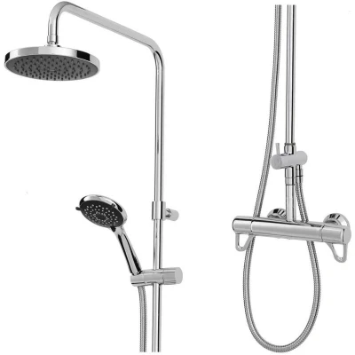 An inclusively designed, Type 3 (TMV3) approved thermostatic bar mixer shower which diverts the flow of water between a rainfall effect (drencher) fixed shower head and a 5 spray pattern, handheld shower head for added luxury, perfect for all the family. This Elina bar diverter includes easy to grip and control, tamper proof looped lever controls and clear flow and temperature markings for ease of use for all users with varying needs and abilities. An easy to clean, hygienic design avoids the formation of dirt traps. Key Features Thermostatic temperature control and Type 3 (TMV) approval for added peace of mind Diverts water between large diameter fixed (rainfall) shower head and a five spray handset Automatic shutdown safety feature should either the hot or cold water supplies fail Suitable for all pressure systems Separate flow and temperature controls with clear markings for ease of use Simple to install and maintain - Includes push fit fixings for concealed pipework KIWA UK Reg 4