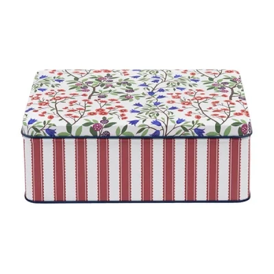 Harts of SturThe Sanderson Foraging Deep Rectangular Tin is beautifully decorated with pretty florals featuring flowerheads in blue, berry pink and purples with green foliage.Perfect for storing items such as freshly baked biscuits or even brownies. Made from steel.The Sanderson Foraging Deep Rectangular Tin is part of a collection and has matching tinware available, sold separately.Size: 7.5(H) x 15(D) x 19.5(L)cm.