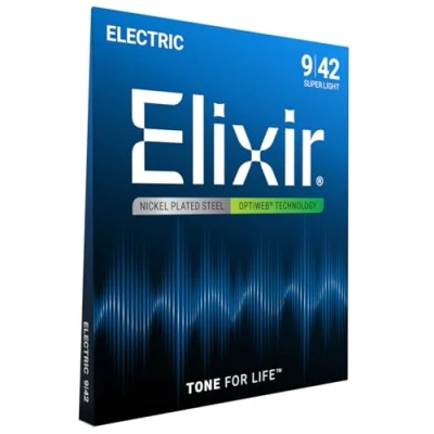 Elixir 19002® Strings Electric Guitar with OPTIWEB® Coating, Super Light (.009 .042), Blue