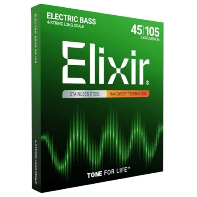 Electric bass guitar strings constructed with stainless steel wrap wire Played for a fresh evolution of stainless tone that’s bright (but not shrill) with deep lows Ultra-thin NANOWEB Coating, redesigned specifically for bass guitars, provides a smooth, natural feel that also enhances grip Our patented coating technology protects against common corrosion, extending tone life longer than any other brand’s coated or uncoated strings (Elixir Strings player survey) Long Scale, Light/Medium gauge: .045 .065 .085 .105