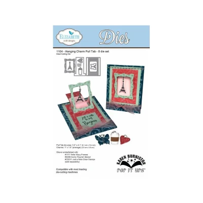 Elizabeth Craft Designs Hanging Charm Pull Tab Steel Cutting Dies can be used for paper crafts. Mixed media art, scrapbooking, card-making and more. One of the greatest things about our dies is that they can be mixed and combined, adding to their versatility and value. Steel cutting die Pull tab die area: 3.2" x 4.1" (8.1cm x 10.4) Charms: 1" x 1.5" (avg) (2.5cm x 3.8cm) Compatible with most leading die-cutting machines POP IT UPS by Karen Burniston Coffee & Cake Collection 1104 ECD1104 ECD1104 MPN 1104